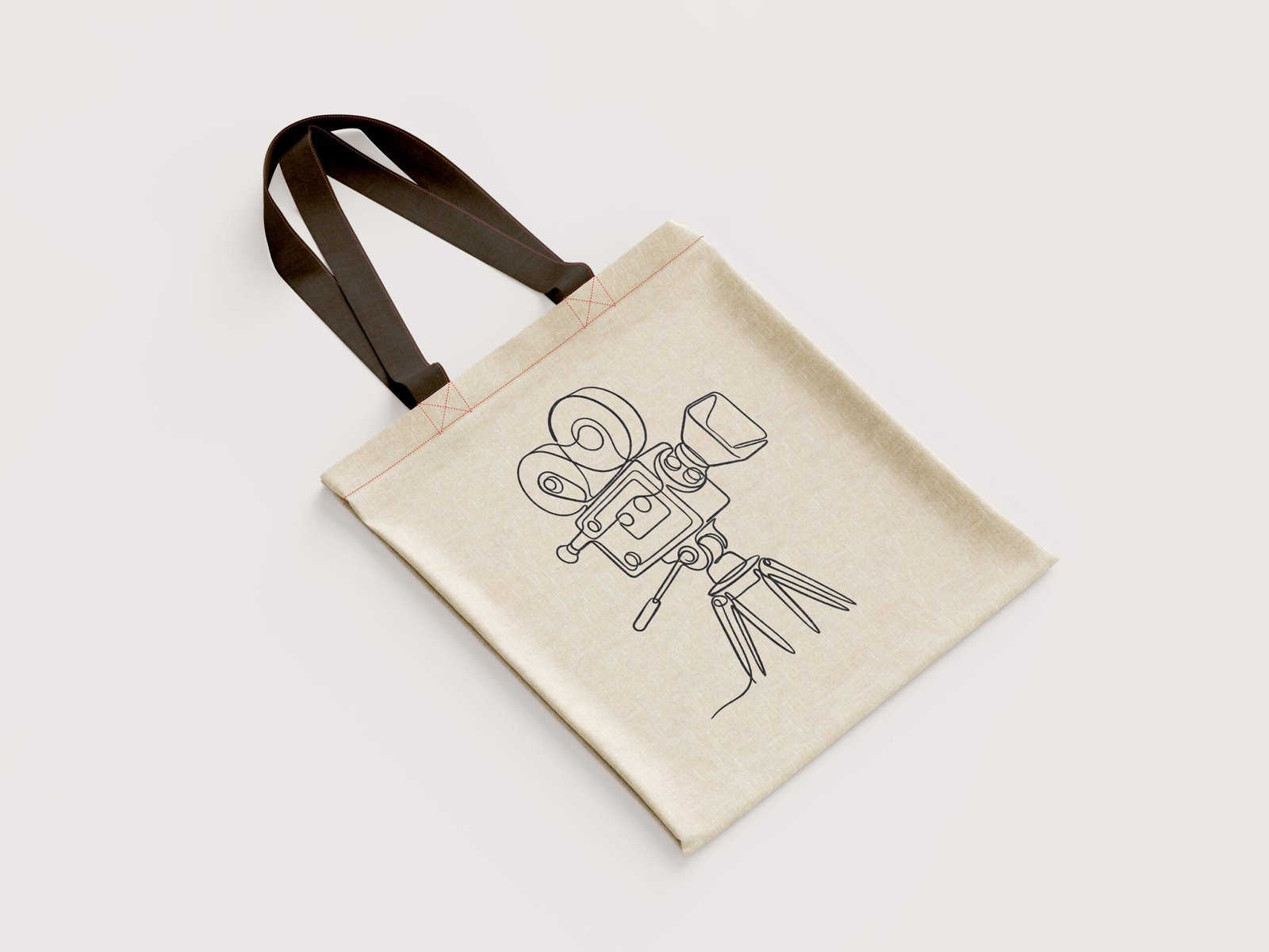 بأسلوب فني مينيمالي (Minimalist)، رُسمت هذه الكاميرا الكلاسيكية بخط حبر واحد متصل، لترمز إلى تدفق أفكار المخرج من الخيال إلى الشاشة. إنها ليست مجرد حقيبة قماشية، بل هي تحية صامتة لتاريخ السينما ولأولئك الذين يقدرون الجمال في البساطة.